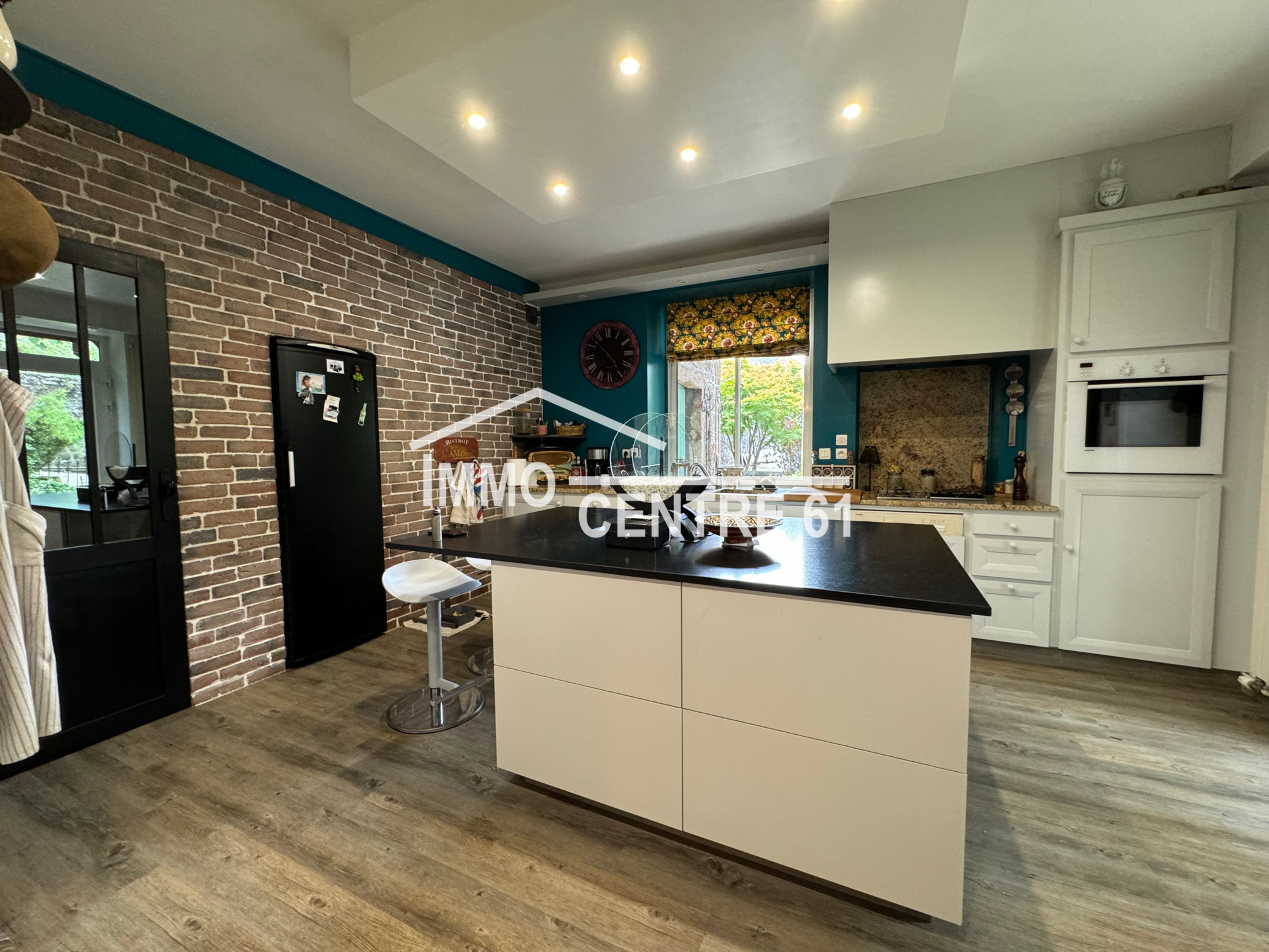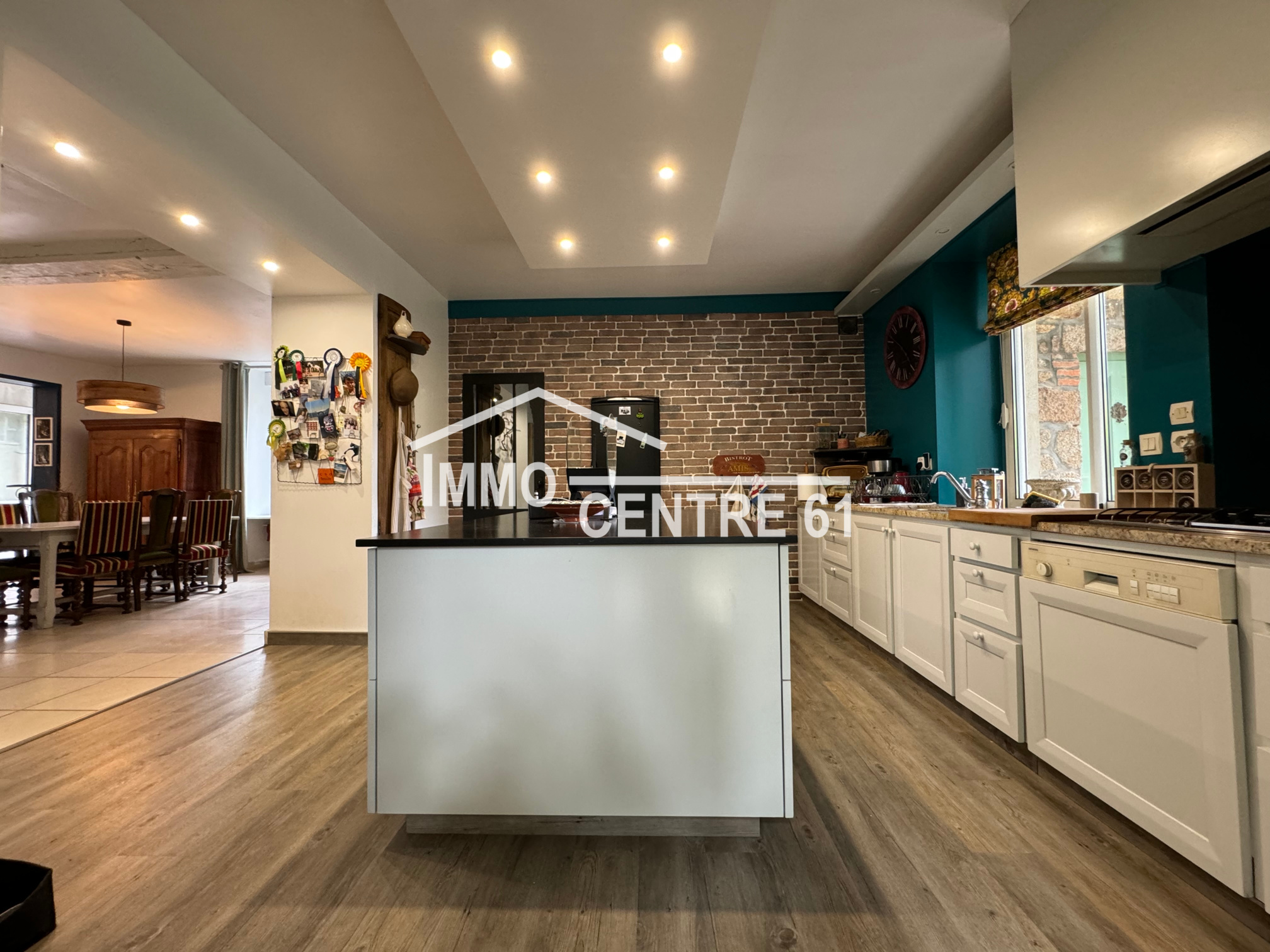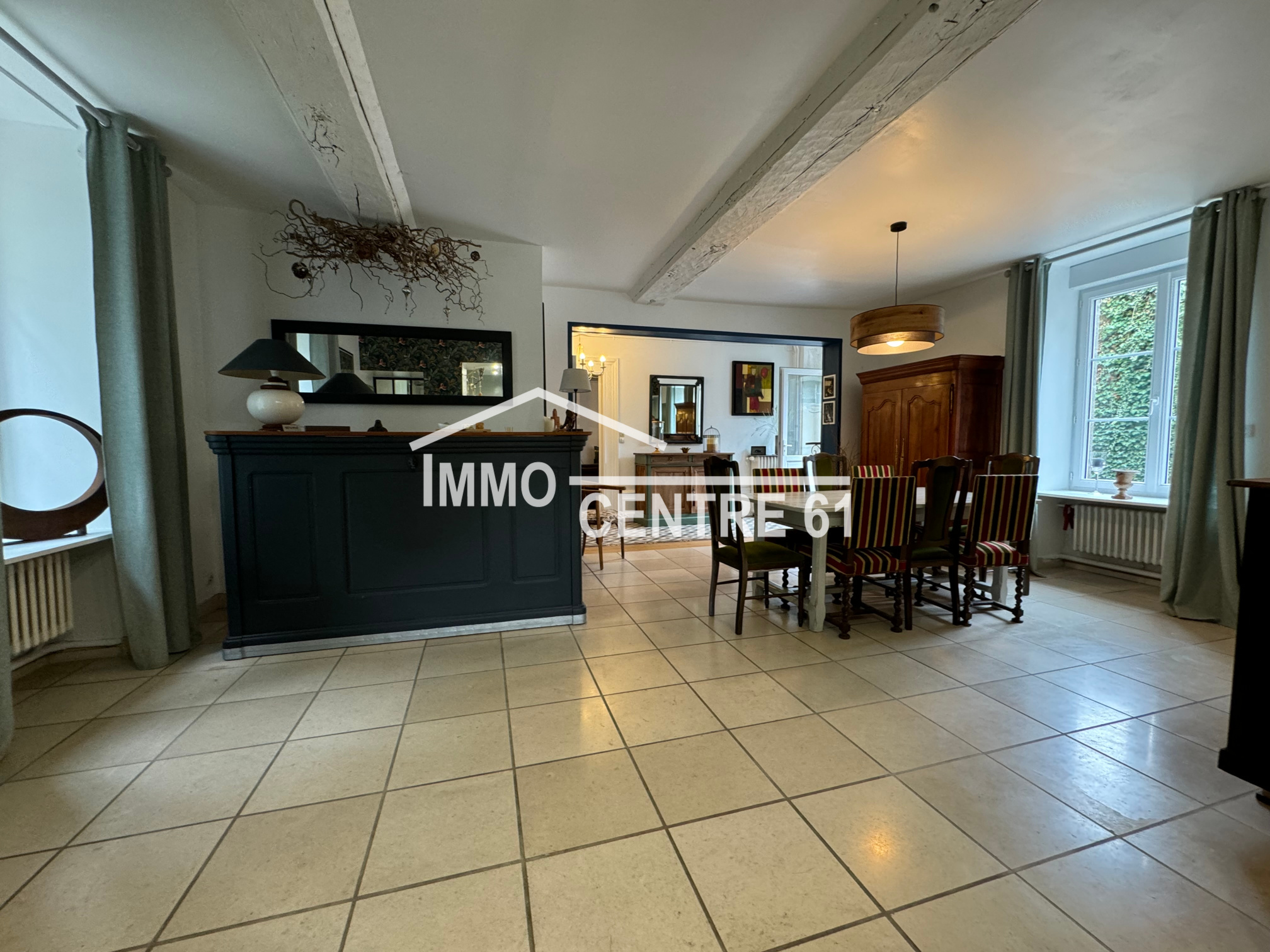 La Ferté Macé: Elégante propriété de centre ville à l'abri des regards composée d'une maison d'habitation 250m². Proposant des volumes généreux et de la luminosité, le rez de chaussée est très agréable: entrée, salon avec cheminée 42m², séjour ouvert sur cuisine aménagée, buanderie et arrière cuisine. Au 1er étage: suite parentale (sde et dressing) ouverte sur un balcon, 3 chambres et salle de bains. Au second: palier, grande chambre et grenier. Un double garage sur rue avec accès direct au terrain arboré et clos de hauts murs d'une superficie de 1000m². Cour sur l'arrière. Unique sur le marché. Ref:JH46 Prix: 349 000 Euros.