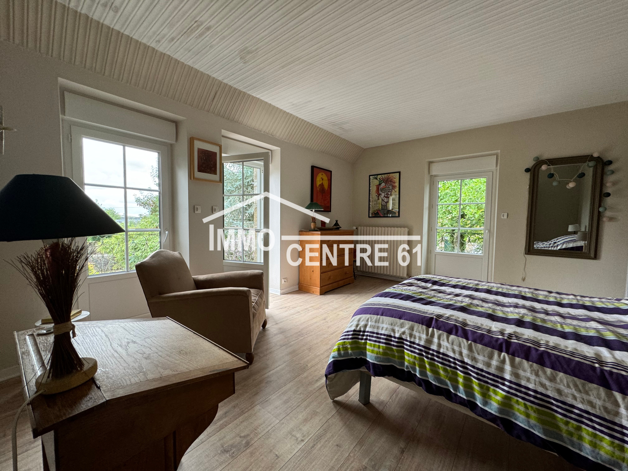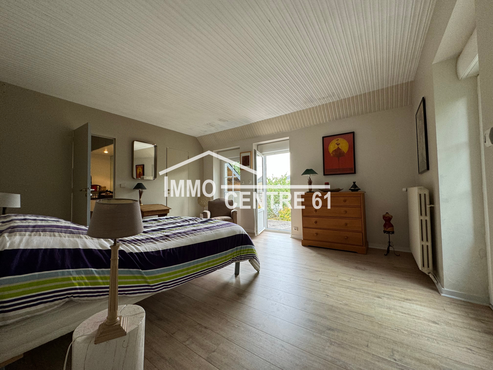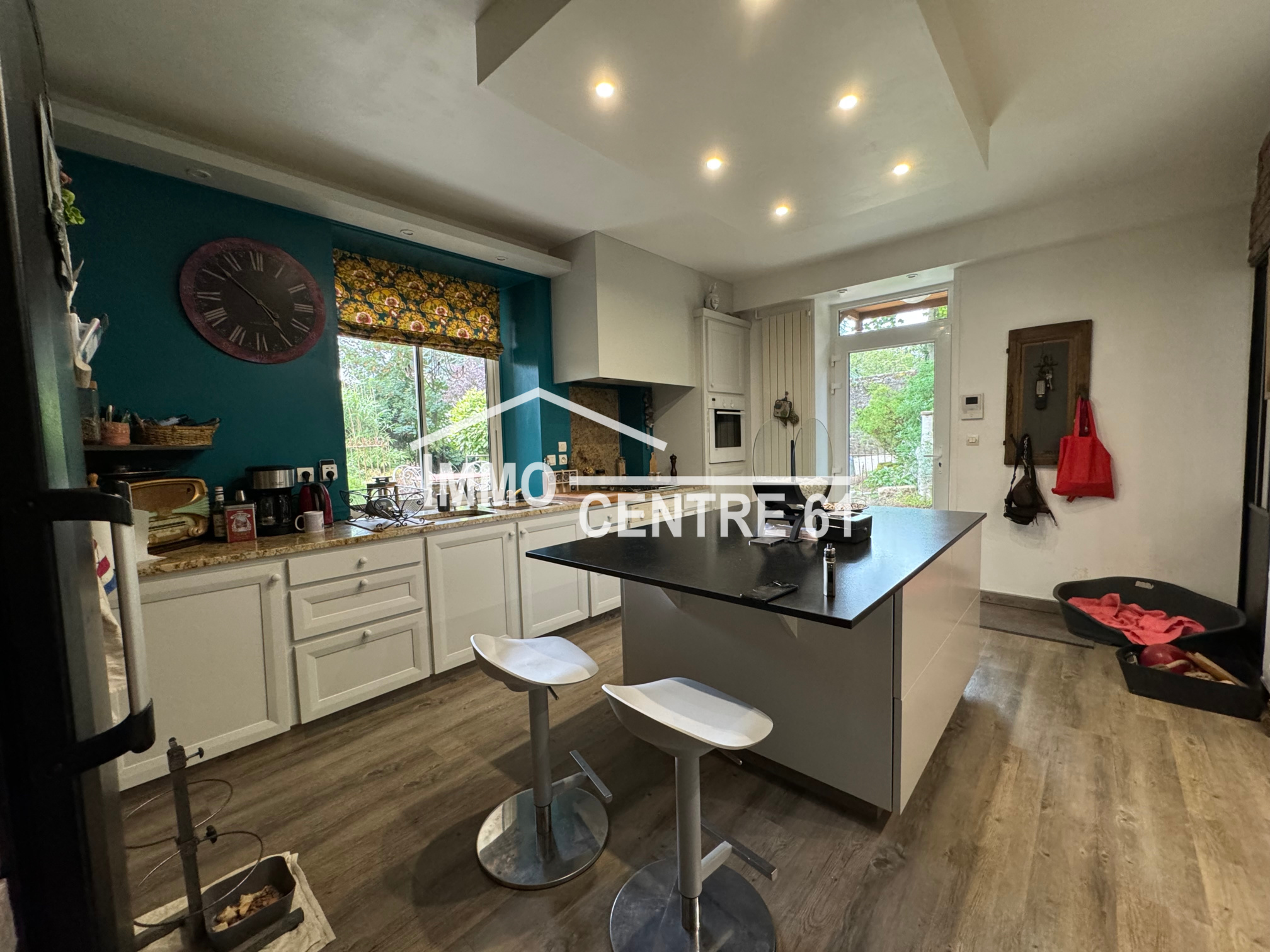 La Ferté Macé: Elégante propriété de centre ville à l'abri des regards composée d'une maison d'habitation 250m². Proposant des volumes généreux et de la luminosité, le rez de chaussée est très agréable: entrée, salon avec cheminée 42m², séjour ouvert sur cuisine aménagée, buanderie et arrière cuisine. Au 1er étage: suite parentale (sde et dressing) ouverte sur un balcon, 3 chambres et salle de bains. Au second: palier, grande chambre et grenier. Un double garage sur rue avec accès direct au terrain arboré et clos de hauts murs d'une superficie de 1000m². Cour sur l'arrière. Unique sur le marché. Ref:JH46 Prix: 349 000 Euros.