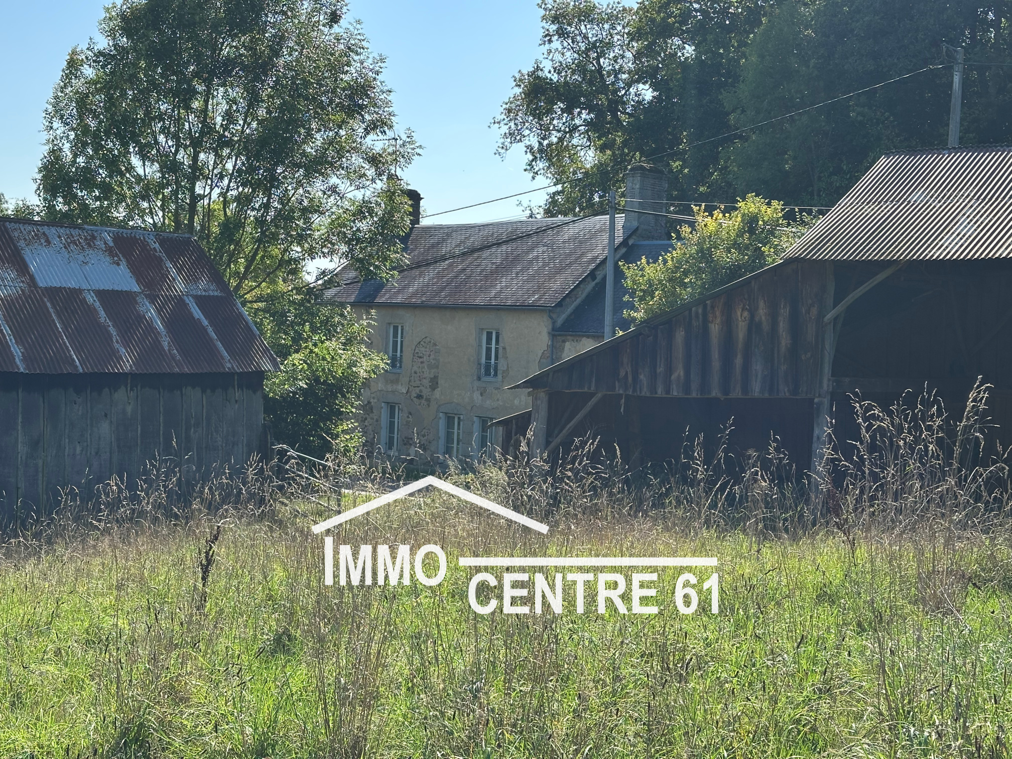 15mn Alencon : Maison ancienne de 108m² comprenant 1 séjour salon avec un poêle à bois , cuisine aménagée , salle d'eau ,wc et chaufferie. A l'étage :3 chambres ,salle de bains et wc. Grenier aménageable au dessus. Jardin d'environ 200m² et terrain de 2240m² de l'autre coté de la route avec un garage et un hangar. Menuiseries PVC et chauffage fioul. Ref:JF106   PRIX:127 500€ (Honoraires compris charge vendeur).Â