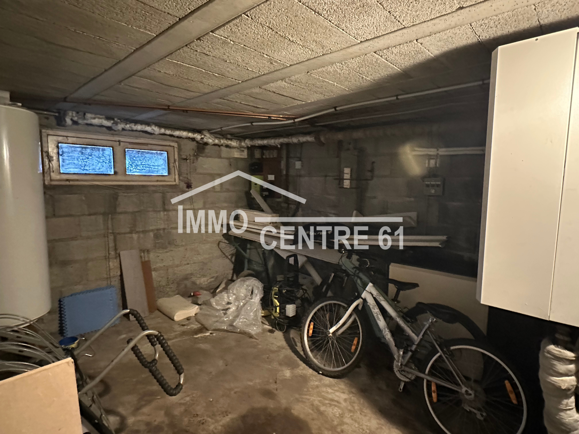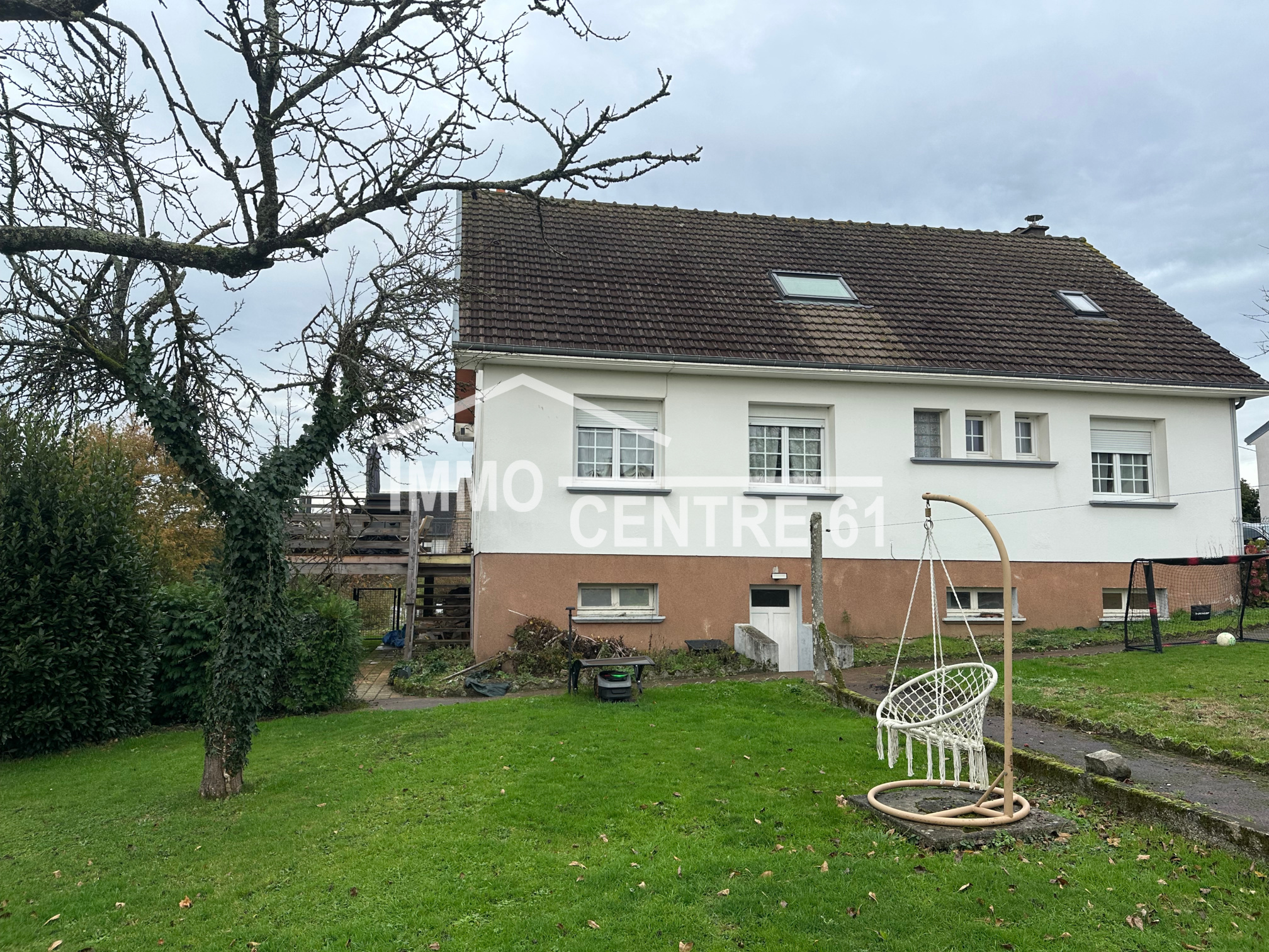 10mn La Ferté Macé: Proche commerces et écoles, pavillon de 135m² habitable de plain-pied sur sous-sol comprenant : salle / salon de 50 m² avec insert bois donnant sur une terrasse, cuisine aménagée-équipée, une chambre parentale avec salle d'eau, WC. A l'étage : 3 chambres dont une avec salle d'eau et WC, dressing. Au sous-sol : Garage, chaufferie, cave. Terrain de 1035m². Fenêtre double vitrage. Chauffage pompe à chaleur et insert bois. DPE classe E. Ref: DG28 Prix: 165 500€ (Honoraires compris charge vendeur)